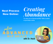 By mastering your inner dialogue you can transform reality into prosperity and abundance. In this process we will be combining tools including perceptual positions, submodalities, unconscious pattern change and future pacing to create abundance!
